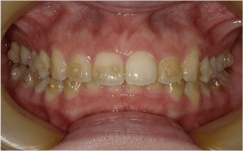 過蓋咬合は、噛み合わせが深い状態のことを指します。歯を噛み合せた時に下の歯が見えなかったり、下の歯が上の歯茎に接触している場合は、過蓋咬合の可能性があります。