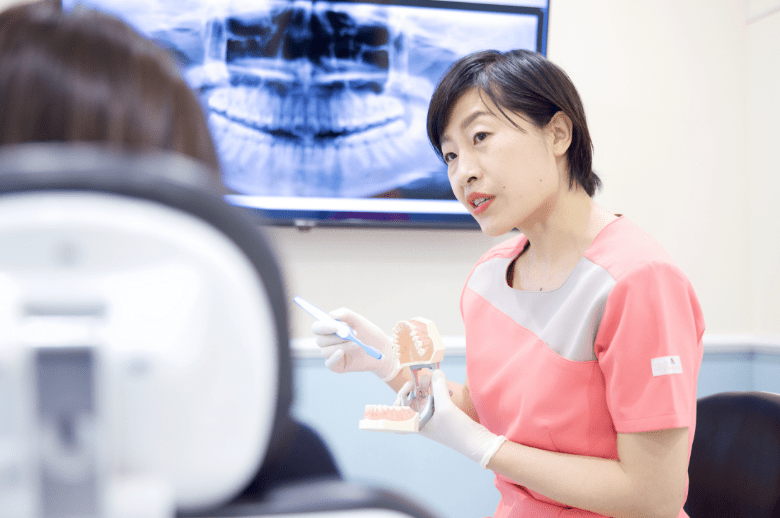 セラミックの方も、素材的に汚れが付きにくいからといってメンテナンスを疎かにすると、歯と歯の隣接面から虫歯になってしまう可能性があります。